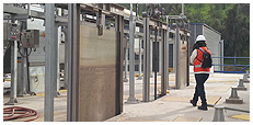 Rejas de limpieza automática ubicadas en las tomas de agua de mar de la planta. Ver más